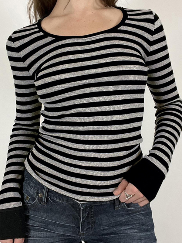 Square Neck Long Sleeve Slit Long Sleeve Tee