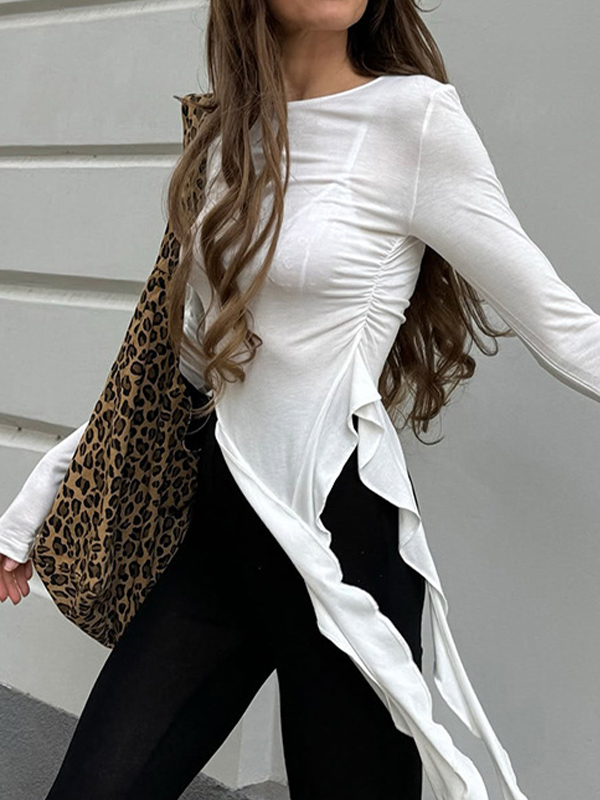 Solid Color Ruffled Long Sleeve Tee