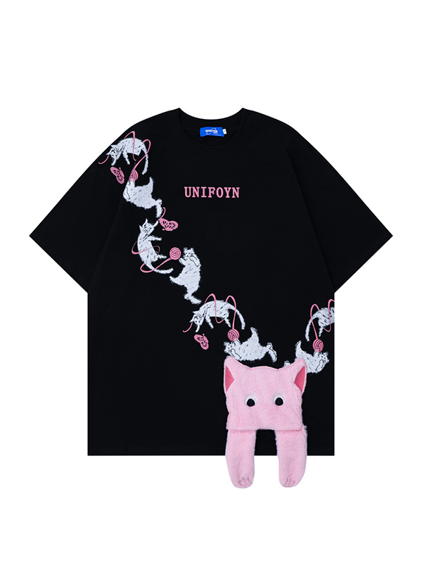 Cat Print Oversized Short Sleeve Tee
