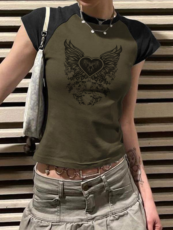Heart Wings Print Short Sleeve Tee