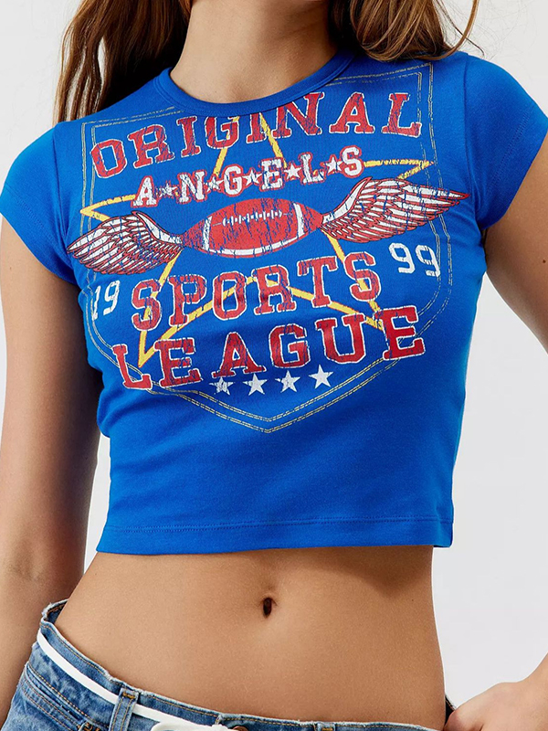 Dark Style Print Crew Neck Cropped Short Sleeve Tee