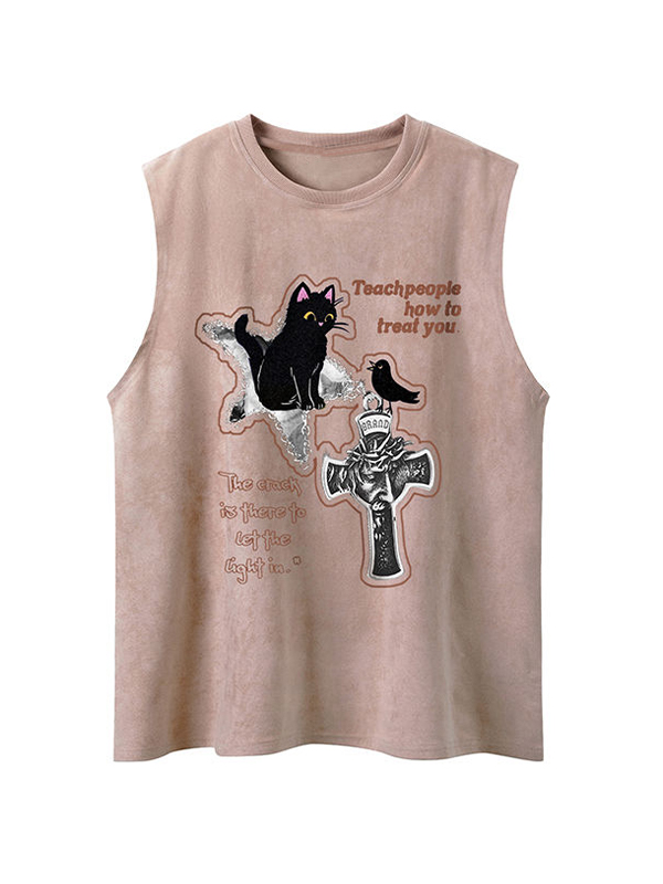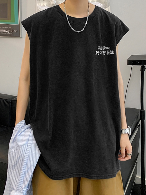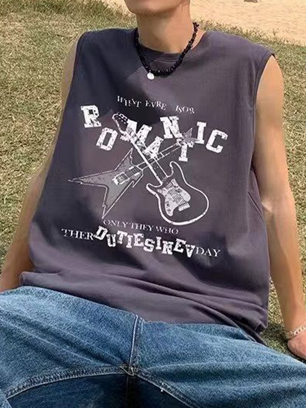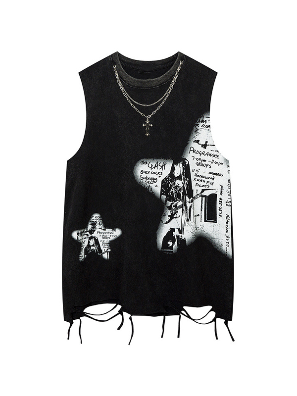 Men’s Hip Pop Print Ripped With Necklace Vest