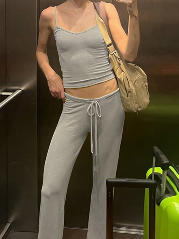 Sporty Solid Quick Dry Cami Top&Flared Pants Set