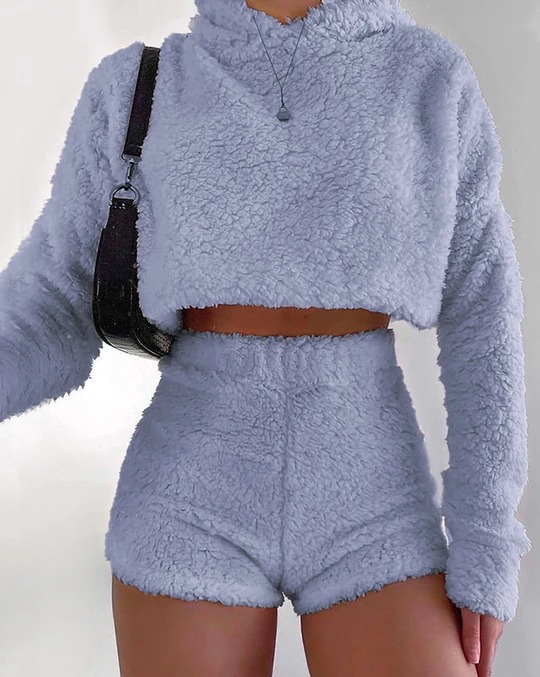 Solid Crew Neck Cable Knit Sweater&High Rise Knit Shorts Set