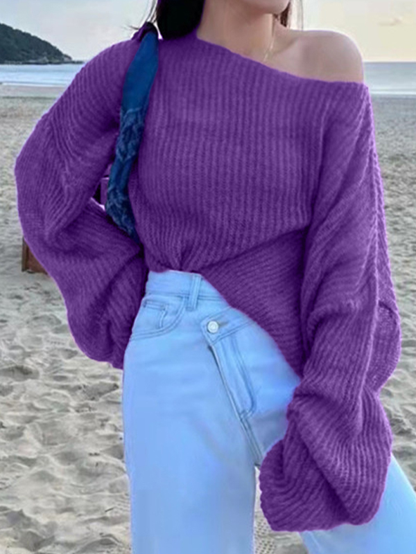 See Through Solid Loose Short Long Sleeve Knit