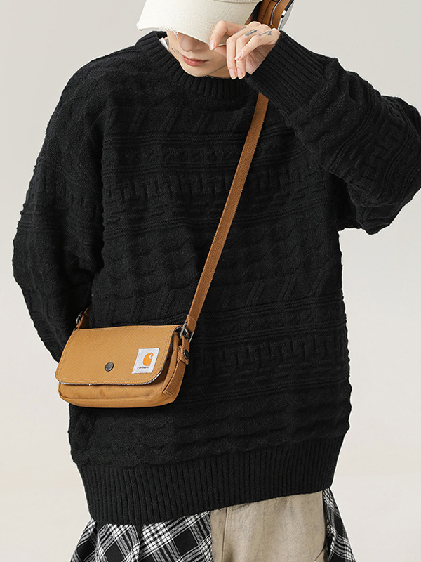 Retro Cable Textured Crew Neck Sweater