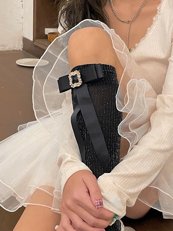 Rhinestone Bow Embellish Knee High Socks