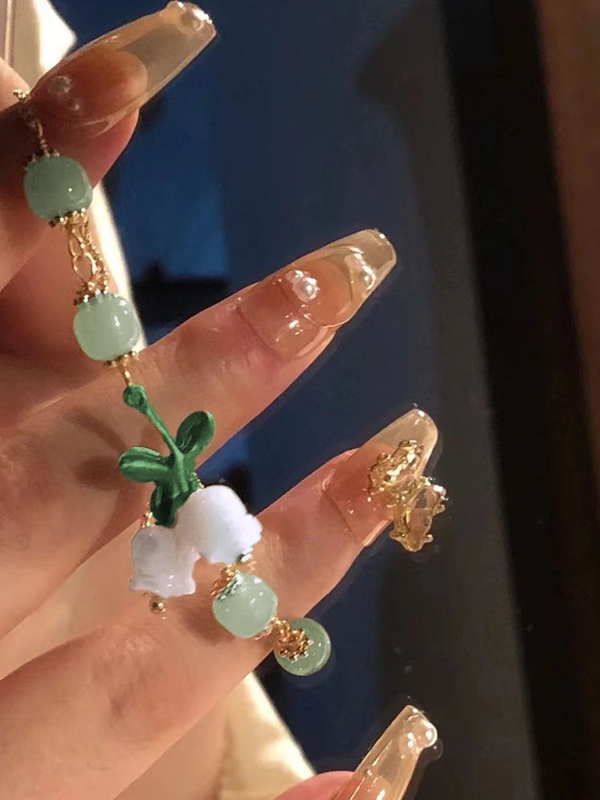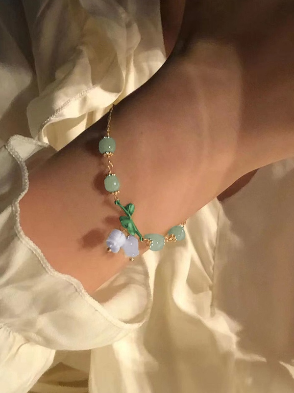 Be the first to review “Adjustable Faux Jade Flower Pendant Link Bracelet”