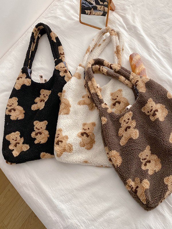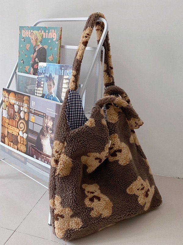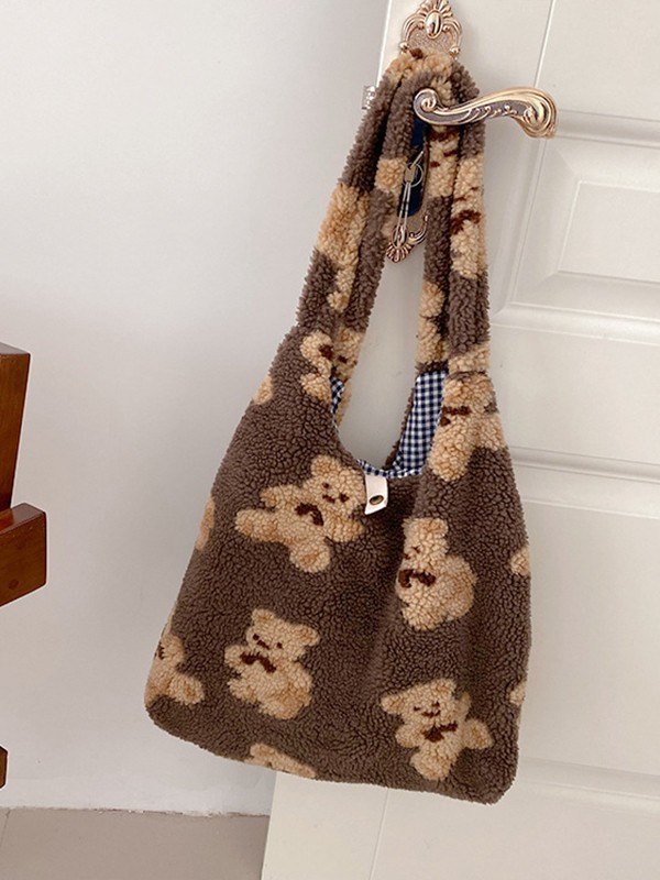 Be the first to review “Bear Pattern Fleece Shoulder Bag”