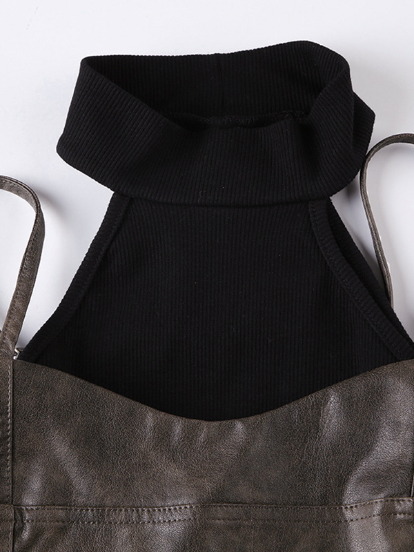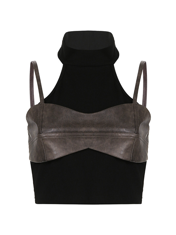 Contrast Color Stitching Fake Two Piece Tank Top