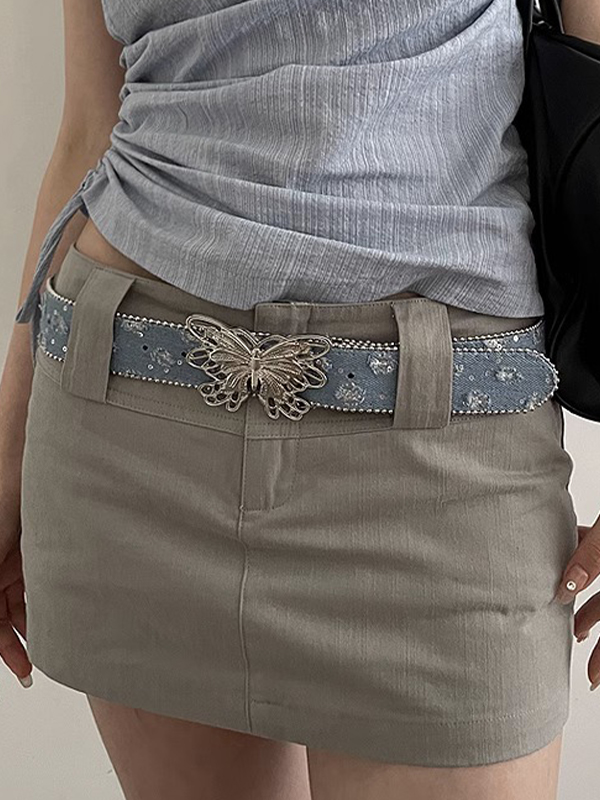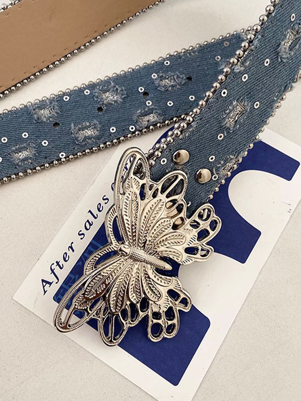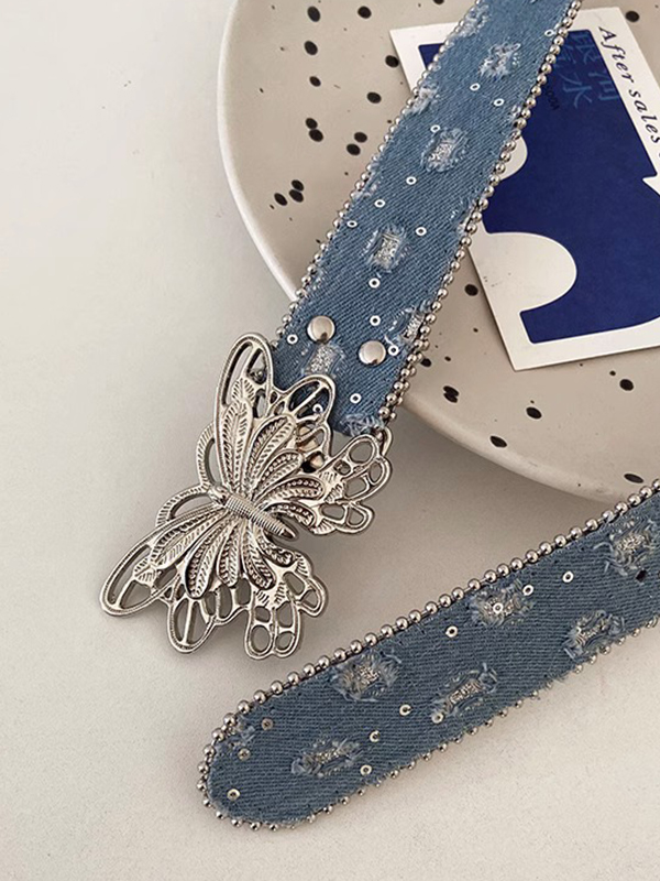 Be the first to review “Denim Sequin Embellished Butterfly Buckle Belt”