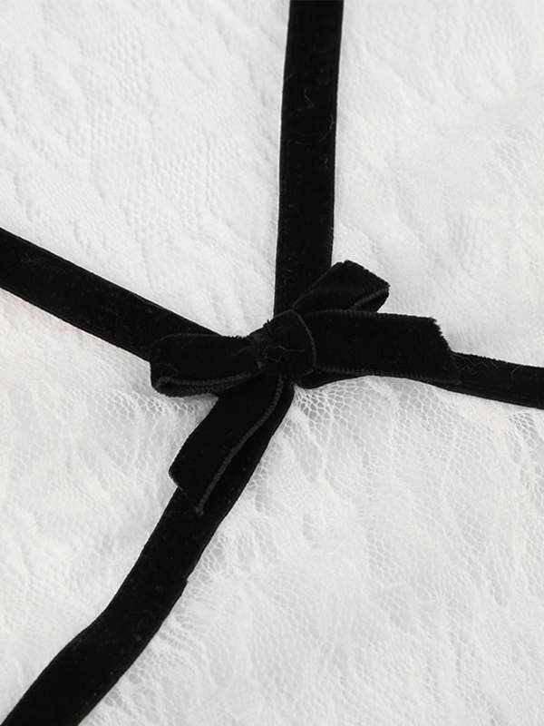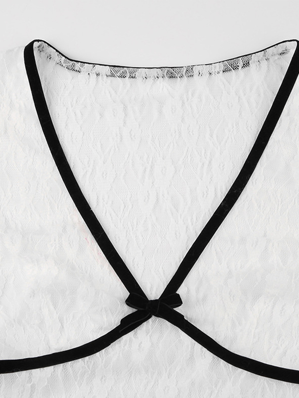 Be the first to review “Lace Bow Splice V Neck Short Sleeve Tee”