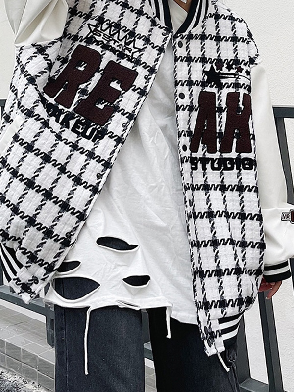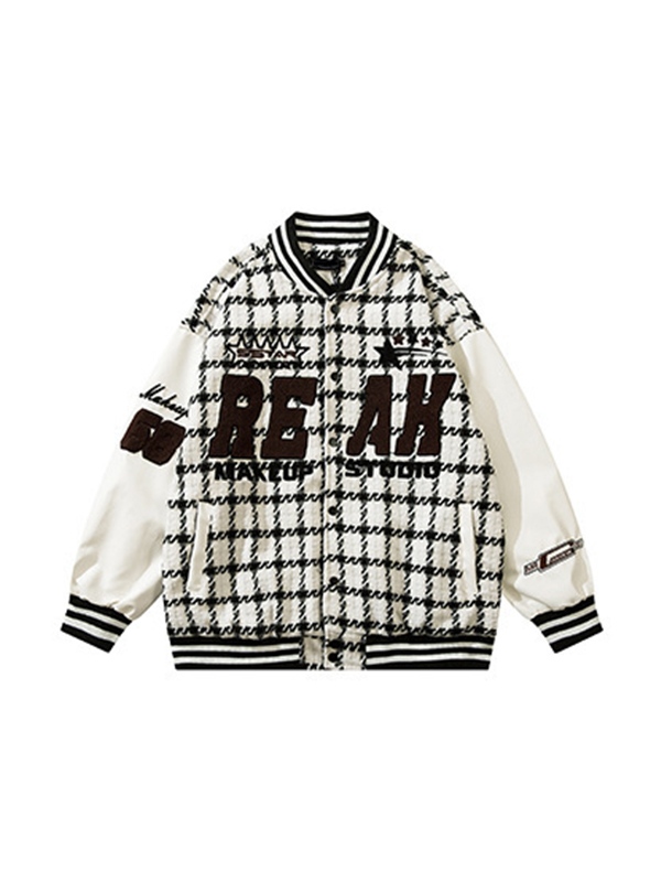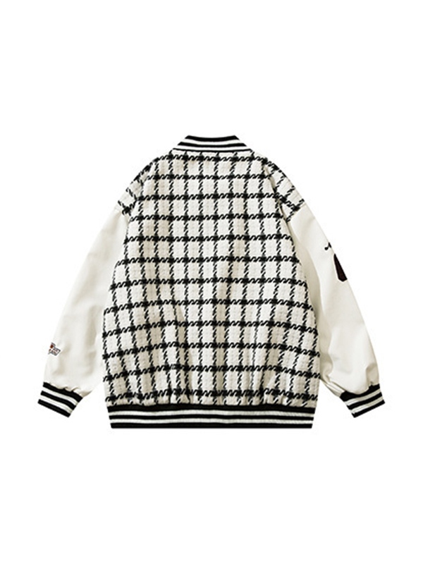 Be the first to review “Letter Embroidery Plaid Splice Varsity Jacket”