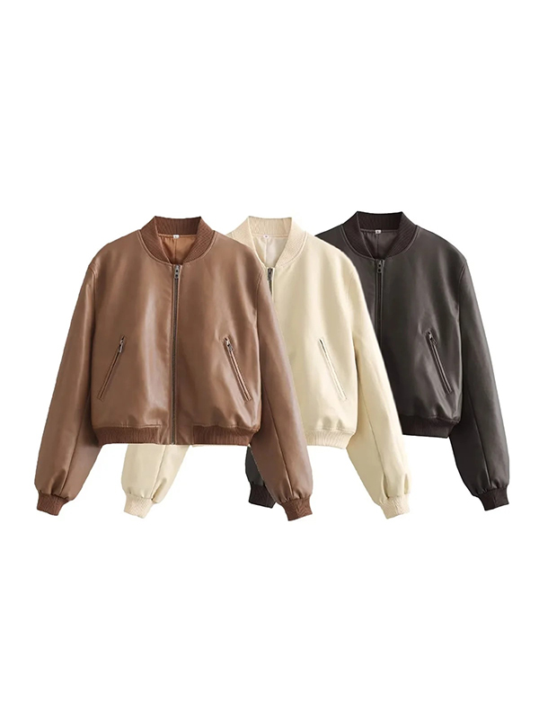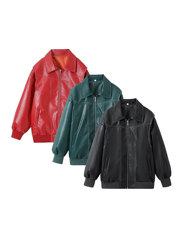Loose long sleeve vintage leather jacket