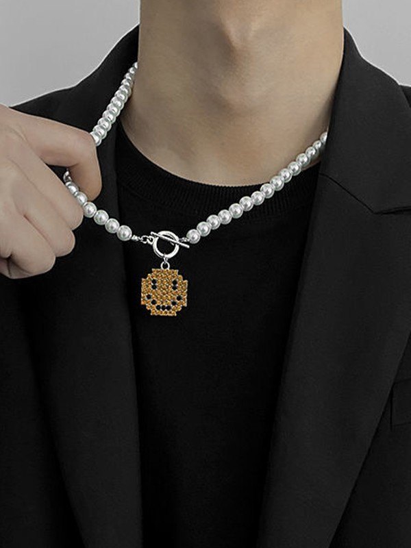 Men’s Smile Pendant Faux Pearl Toggle Necklace