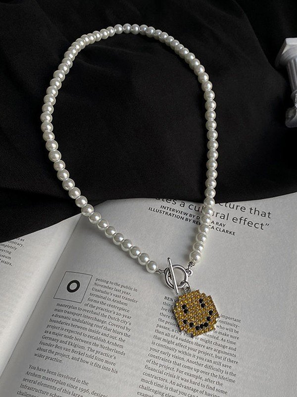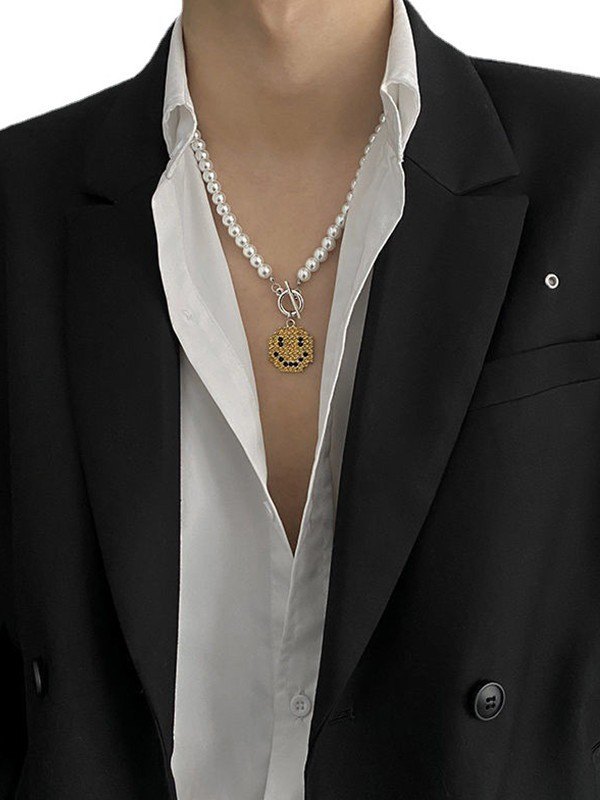 Be the first to review “Men’s Smile Pendant Faux Pearl Toggle Necklace”