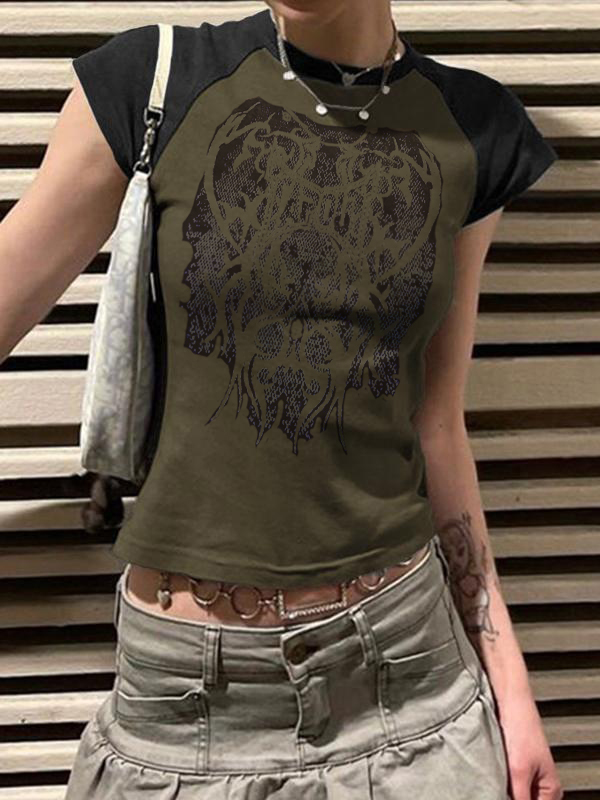 Raglan Sleeve Casual Green Short Sleeve Tees